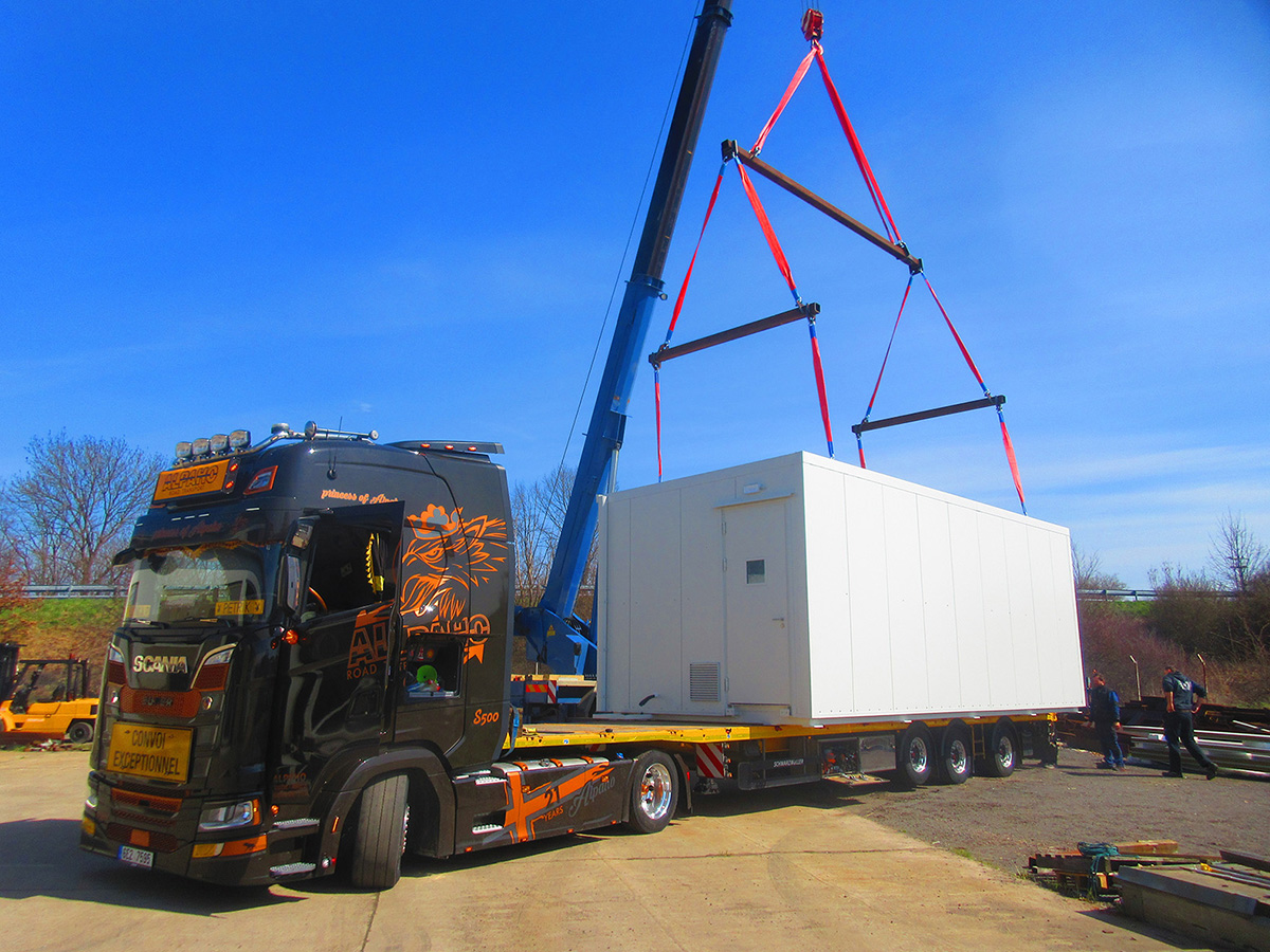 Design and production of transportable buildings - technical rooms for various equipment as electrical panels, PLCs..., designed and constructed from steel frame, walls and sandwich panels or as the modified container, including static calculation, with fire behavior value if needed. Including air conditionings, lights, switches, junction boxes, sensors.