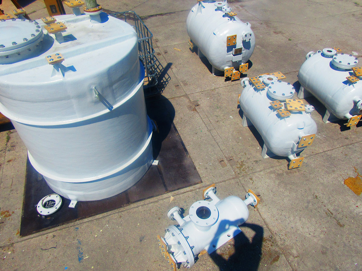 Carbon or stainless steel tanks from small to large storage vessels, of diameter up to 4 meters, shell thickness to 35 mm, weight to 70 tons and volume to 250 m3, (Separators, Mixing Tanks, Storage Tanks, Evaporators).