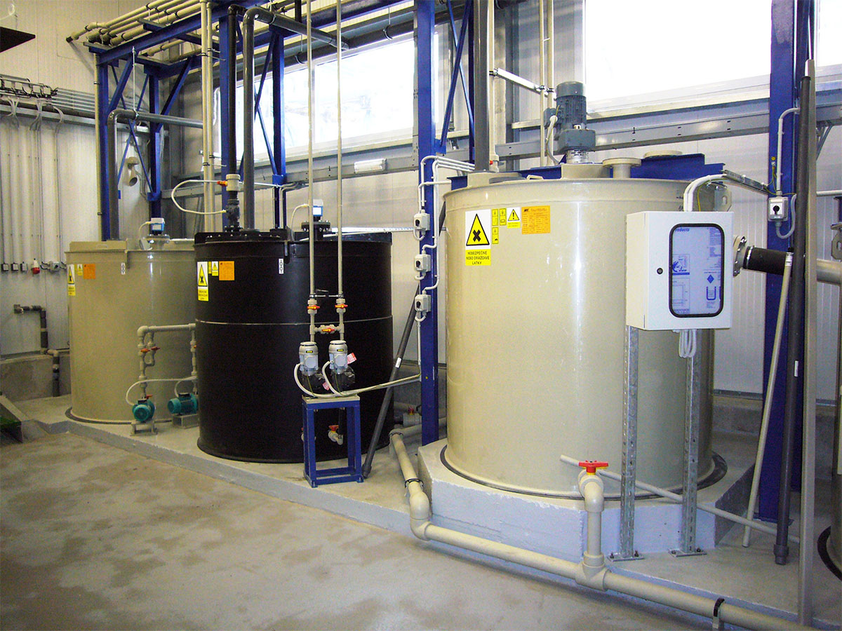 Production and supply of complete units for cleaning sewage, water containing metals, solid particles, oil substances etc, mostly from plastic materials.