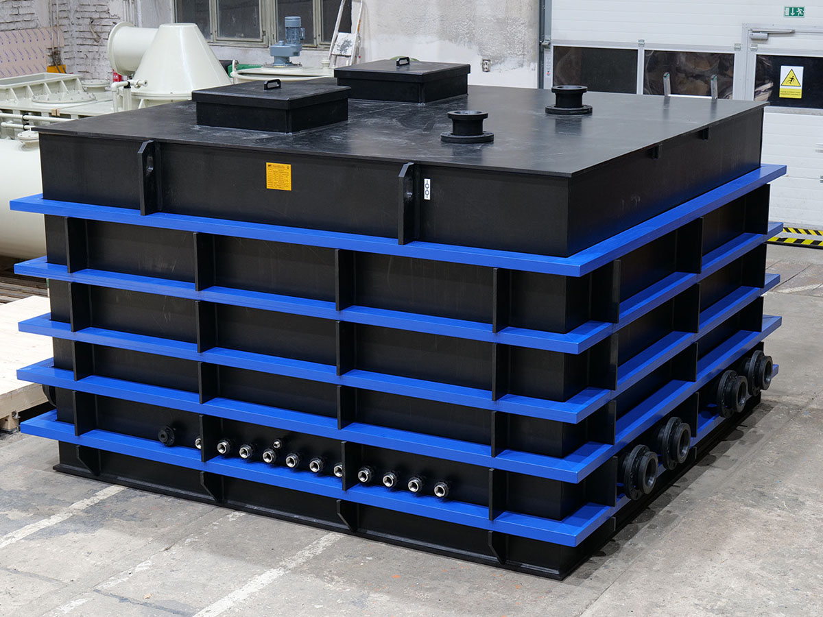 Production and supply of complete units for cleaning sewage, water containing metals, solid particles, oil substances etc, mostly from plastic materials.